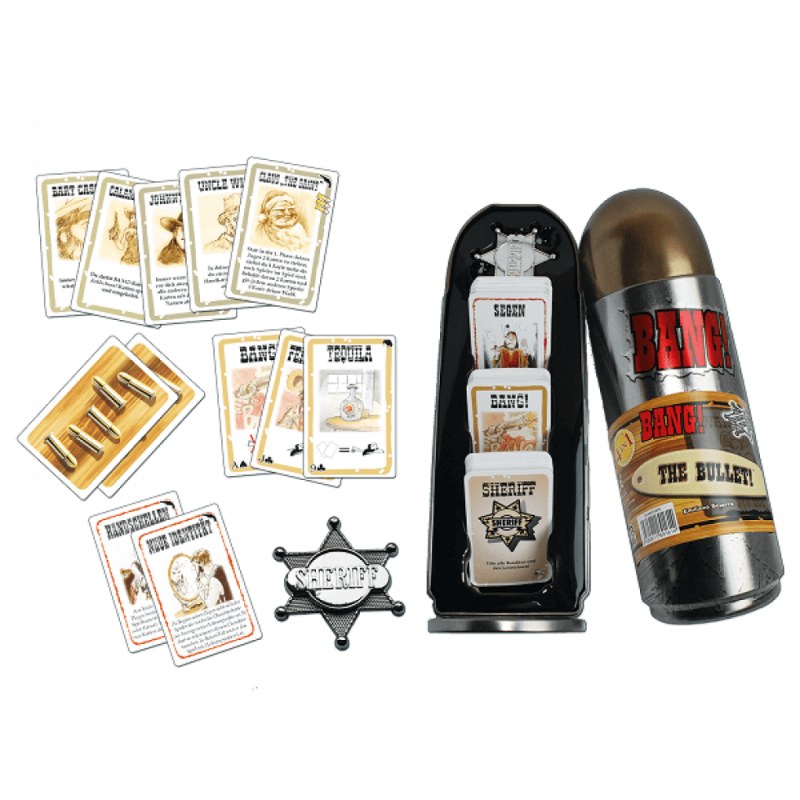 Avec Bang The Bullet, retrouvez toutes les sensations de Bang! le jeu dans un coffret de métal en forme de balle !