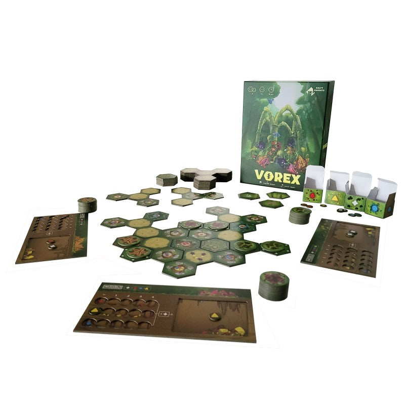 Vous devrez mettre en place un moteur de production suffisant, bloquer les autres joueurs, construire le plateau en fonction de vos objectifs et placer vos fleurs judicieusement pour gagner une partie de Vorex.