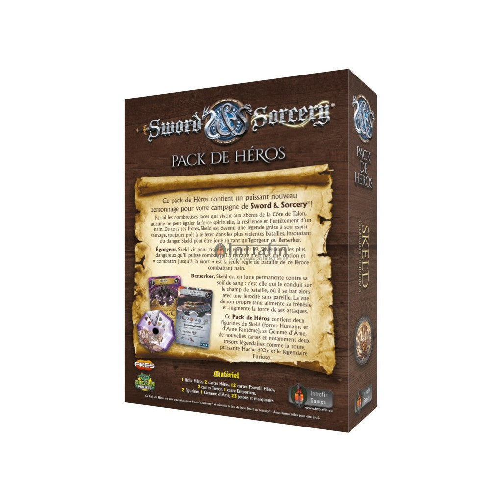 Ce Pack de Héros contient deux figurines de Skeld (forme Humaine et d’Âme Fantôme), sa Gemme d’Âme, de nouvelles cartes et notamment trois trésors légendaires comme le Tomahawk, la toute puissante Hache d’Or et le légendaire Furioso.