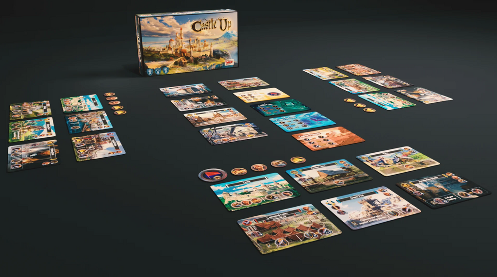 CastleUp is a competitive card game for 2-4 players set in the lively Middle Ages. Each player builds and expands their own city, competing for dominance through strategic choices and clever planning. The game mixes medium-complexity strategy with deck and tableau building mechanics. Every card you play is a key decision, adding depth as you grow your city. Unique mechanics, like cards that flip when damaged while staying visible to everyone, create tactical layers. Resource management is crucial, requiring smart use of assets to outsmart your opponents. Designed for players who prefer skill over luck. With each turn building on the last, your actions drive towards victory in a multi-round game. The winner is the one with the most victory points when the deck runs out. CastleUp not only tests your strategy but also immerses you in a richly detailed medieval world.