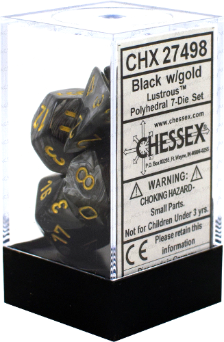 Sorry! Our Chessex Lustrous Black w/Gold - Set of 7 is currently sold out.