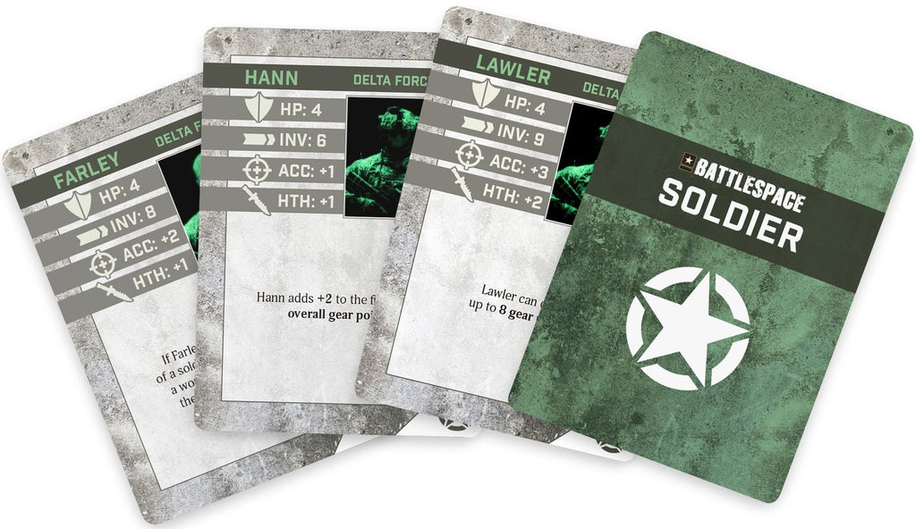 ● 34 SOLDIER CARDS representing operatives from 5 military forces, from CIA and Delta Force to British SAS, with every stat needed to start, and their own faction specialties.