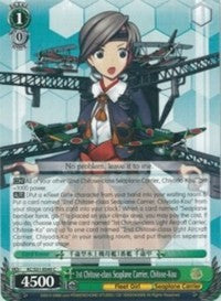 [CONT] All of your other "2nd Chitose-class Seaplane Carrier, Chiyoda-Kou" get +1000 power. [AUTO][Put a {Fleet Girl} character from your hand into your waiting room & Put a card named ""2nd Chitose-class Seaplane Carrier, Chiyoda-Kou" from your stage and this card into your clock] When a card named "Seaplane bomber force, go-!" is placed on your climax area, you may pay the cost. If you do, choose up to one card named "1st Chitose-class Light Aircraft Carrier, Chitose-Ko" and up to one card named "2nd Chitose-class Light Aircraft Carrier, Chiyoda-Ko" in your waiting room, and put them on seperate positions of your stage.